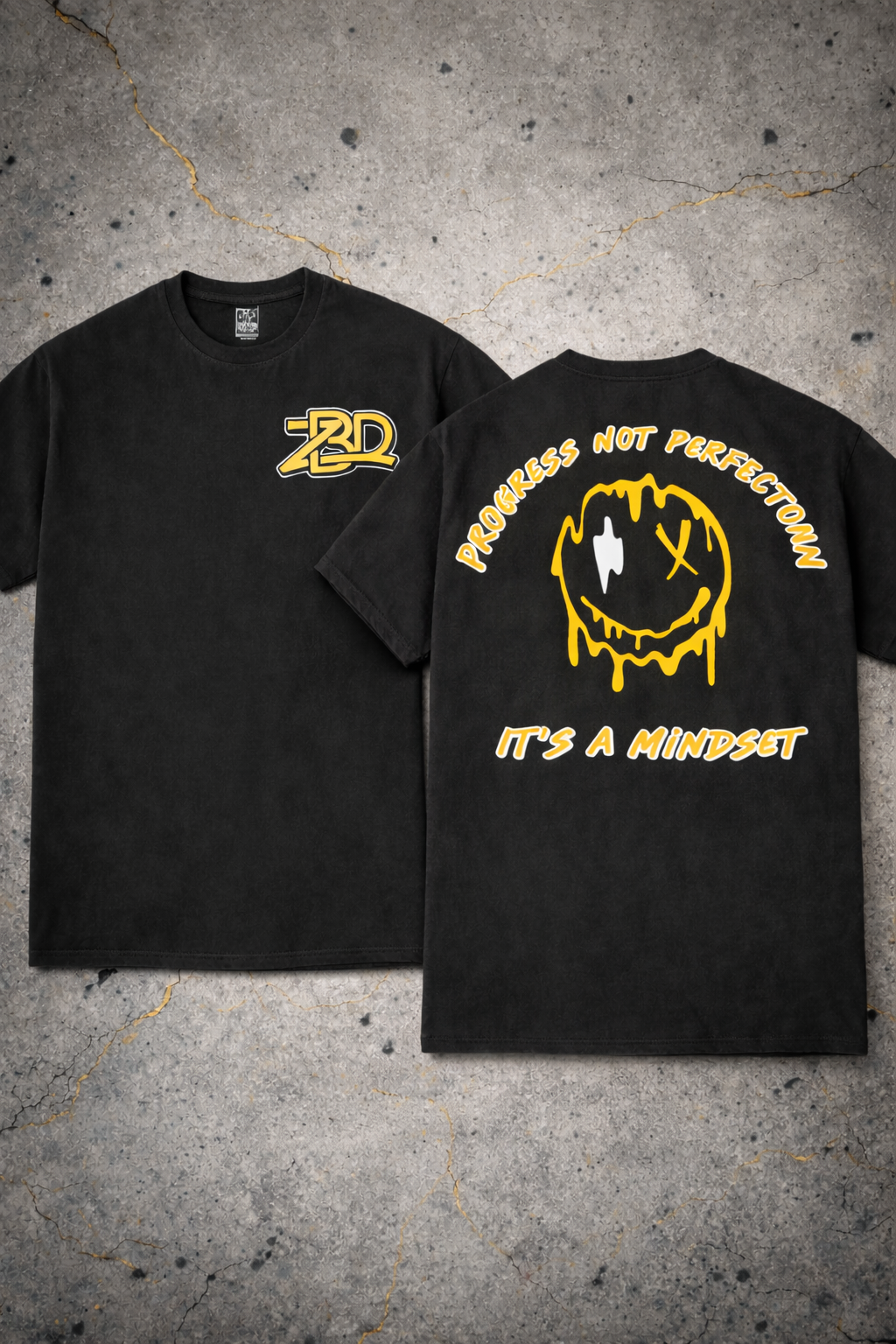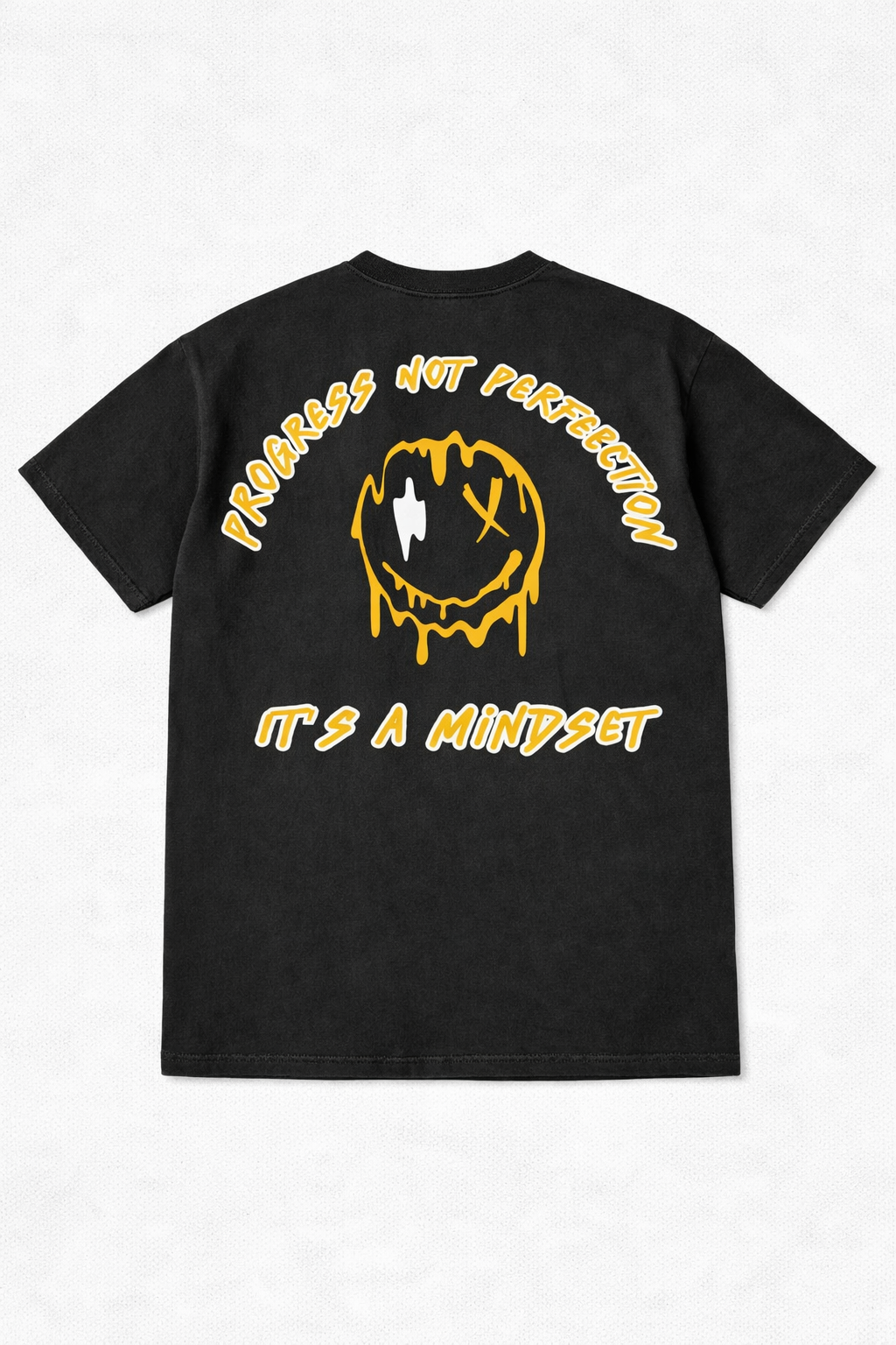 The Progress Not Perfection Tee is a reminder that growth isn’t about getting it right, it’s about showing up. Featuring a bold, dripping smiley graphic and the message “It’s a Mindset”, this tee represents resilience, self-belief, and choosing forward motion even on the tough days.